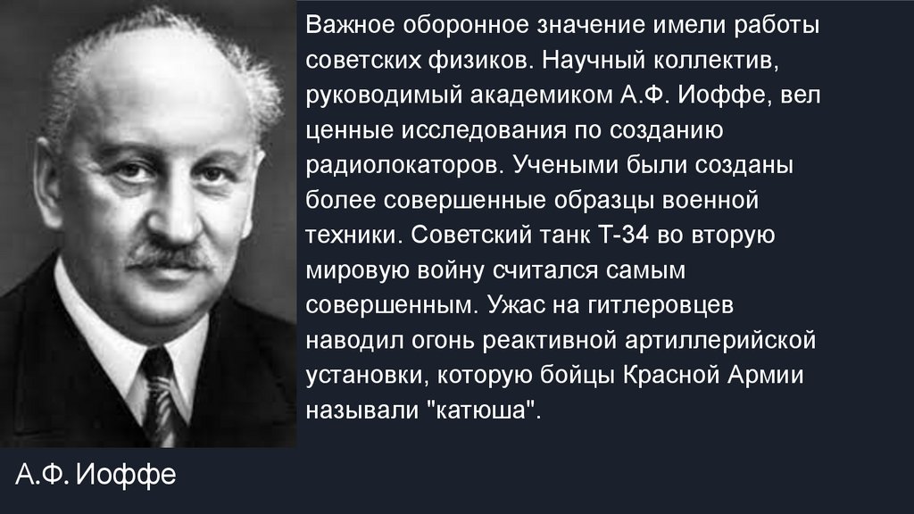Важное оборонное значение имели работысоветских физиков. Научный коллектив,