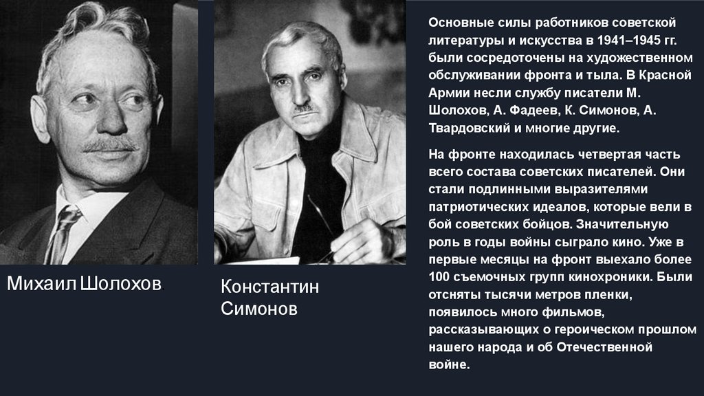 Основные силы работников советскойлитературы и искусства в 1941–1945 гг.