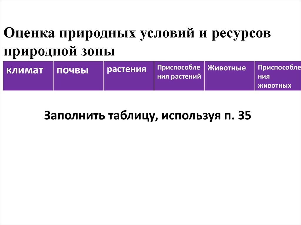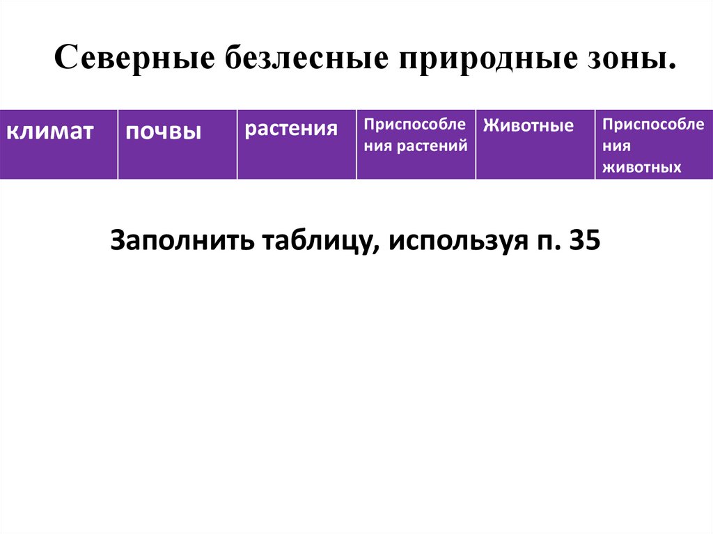 Заполнить таблицу, используя п. 35
