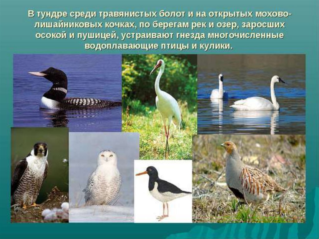 Особенно много в тундре птиц. Около 150представителей 11 отрядов гнездится на островах и