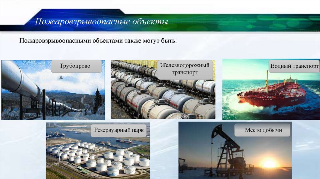 Пожаровзрывоопасные объектыПожаровзрывоопасными объектами также могут быть: