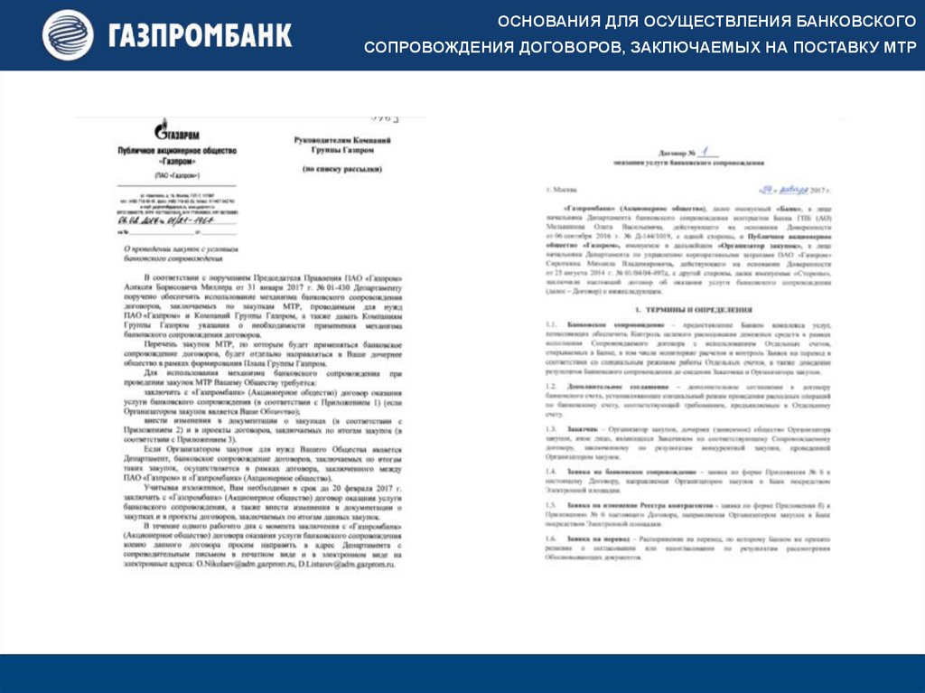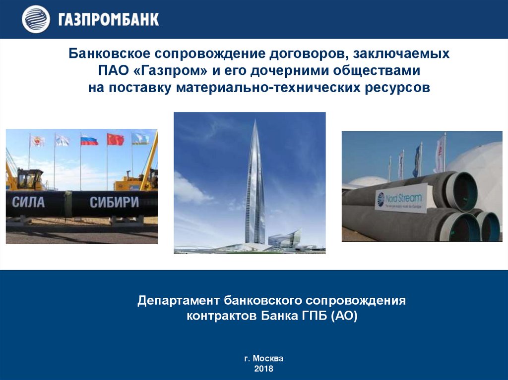 Банковское сопровождение договоров, заключаемых ПАО «Газпром» и Компаний Группы Газпром.
