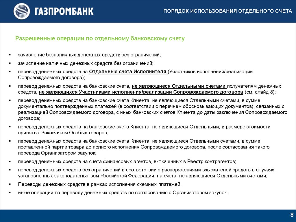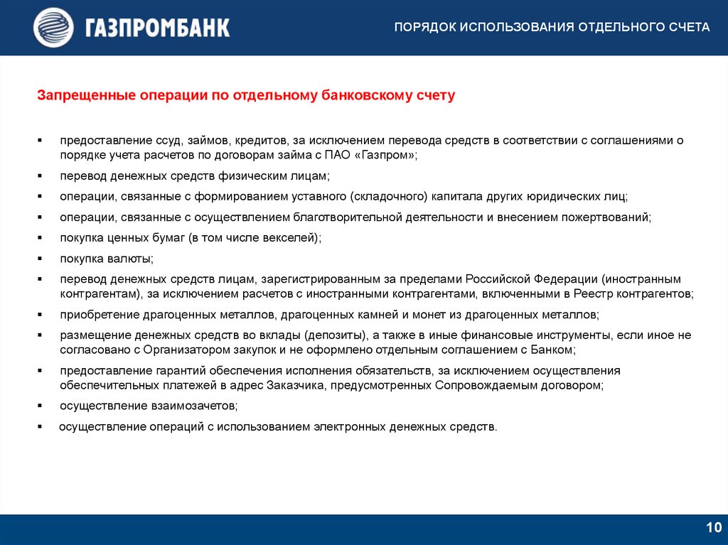ПОРЯДОК ИСПОЛЬЗОВАНИЯ ОТДЕЛЬНОГО СЧЕТАЗапрещенные операции по отдельному банковскому счету