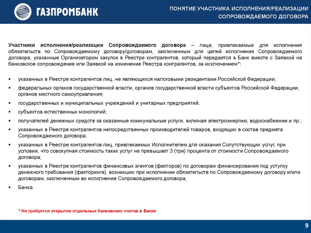 исключений из термина Участники исполнения/реализации Сопровождаемого договора;