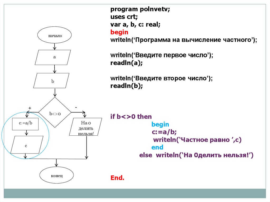 !!! Таким образом, если второе число b не равно нулю, вычисляем частное