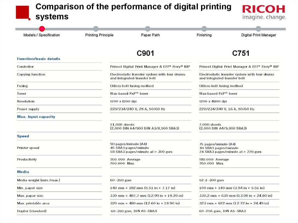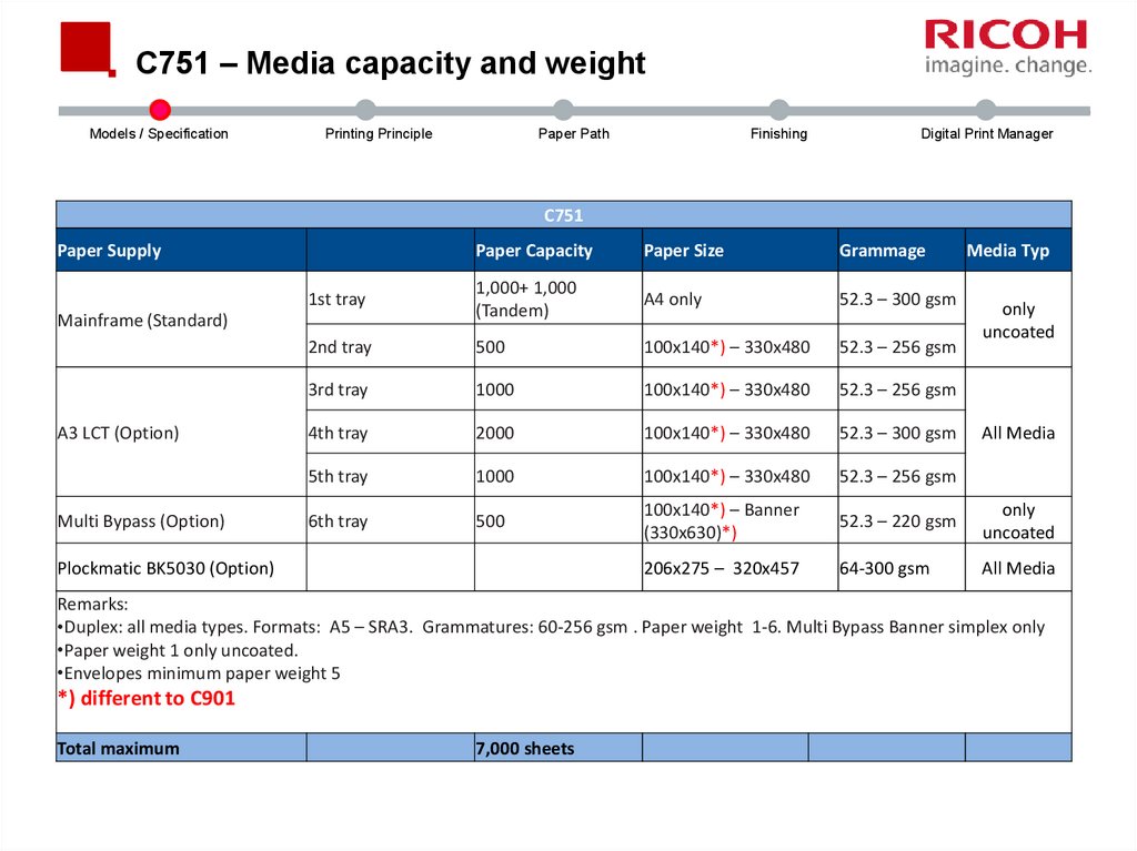 C751 – Media capacity and weightModels / Specification