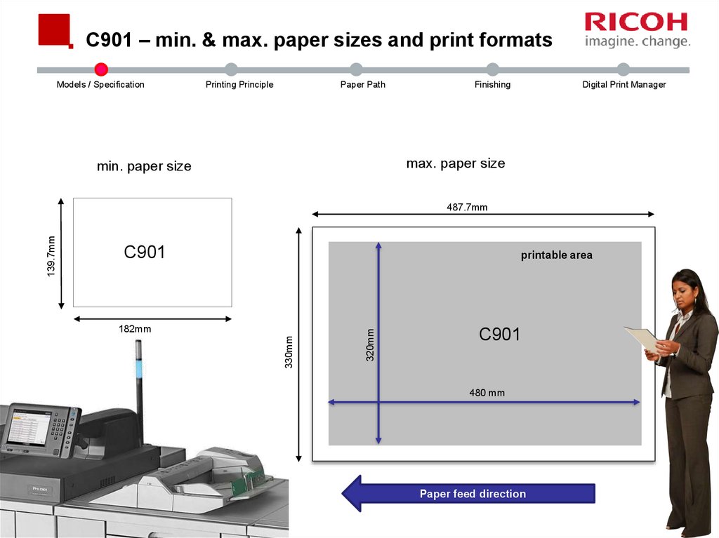 C901 – min. & max. paper sizes and print formatsModels / Specification