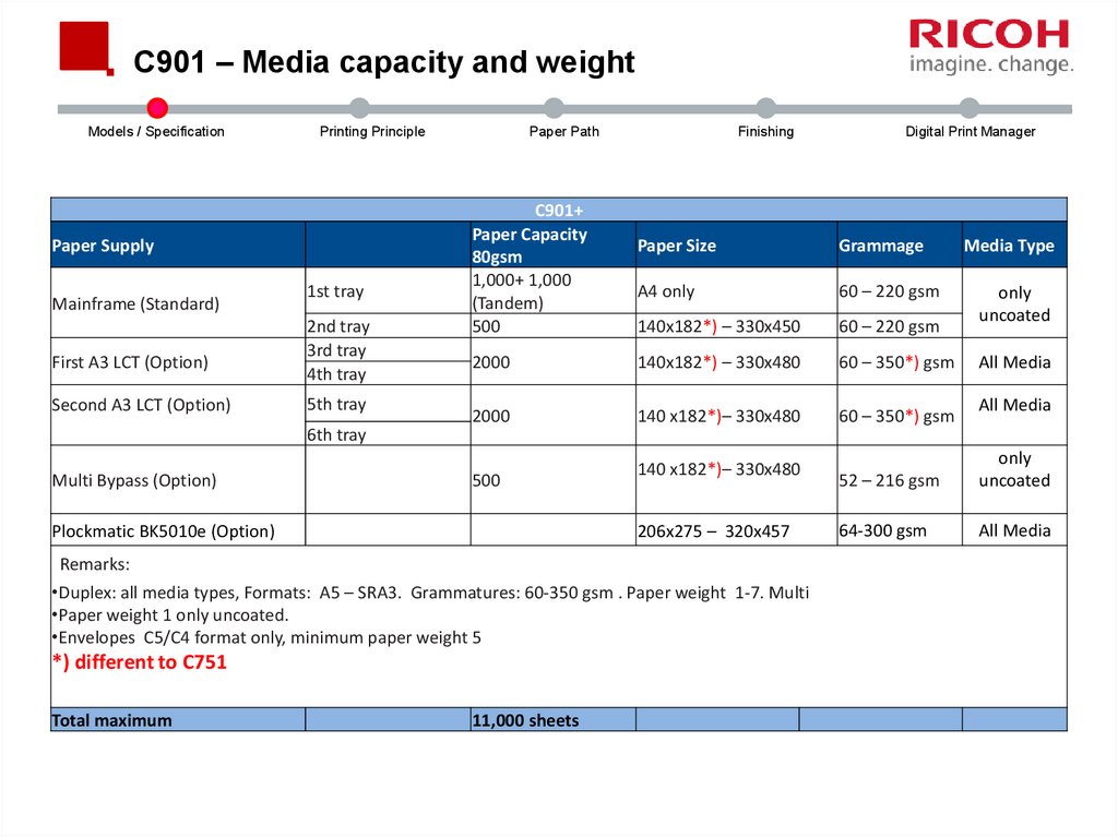 C901 – Media capacity and weightModels / Specification