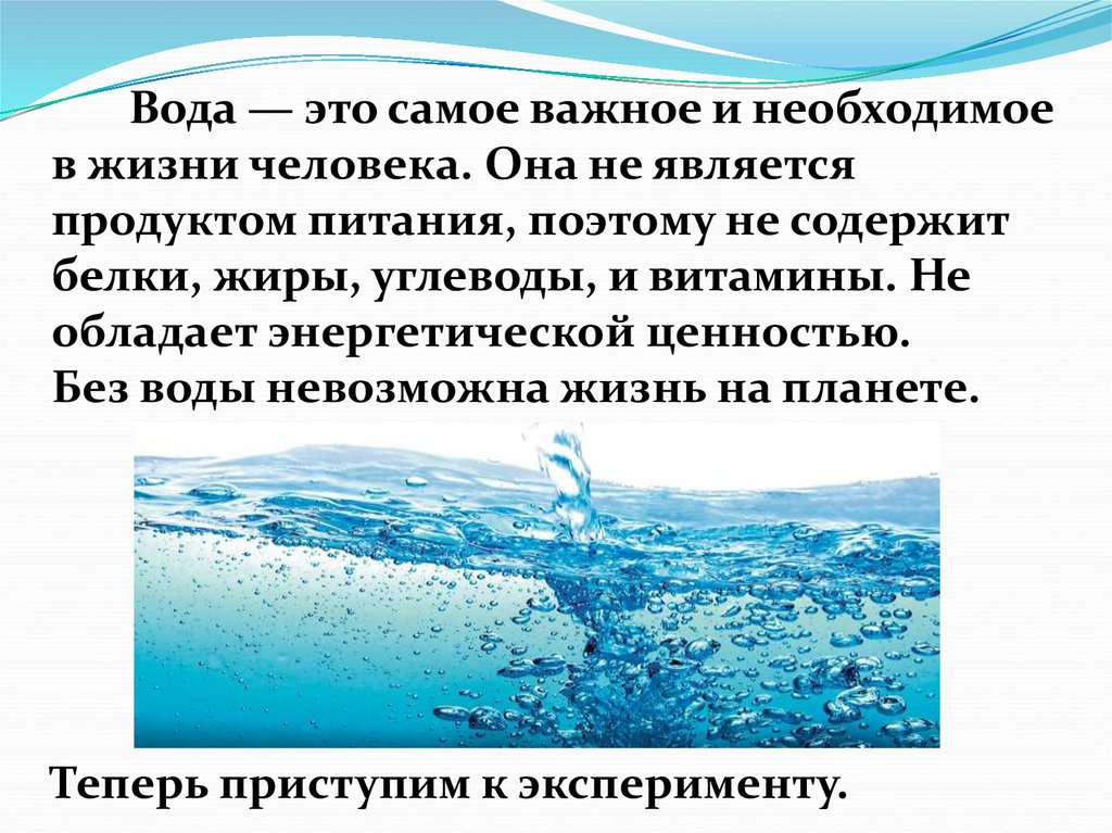Вода — это самое важное и необходимоев жизни человека. Она не является