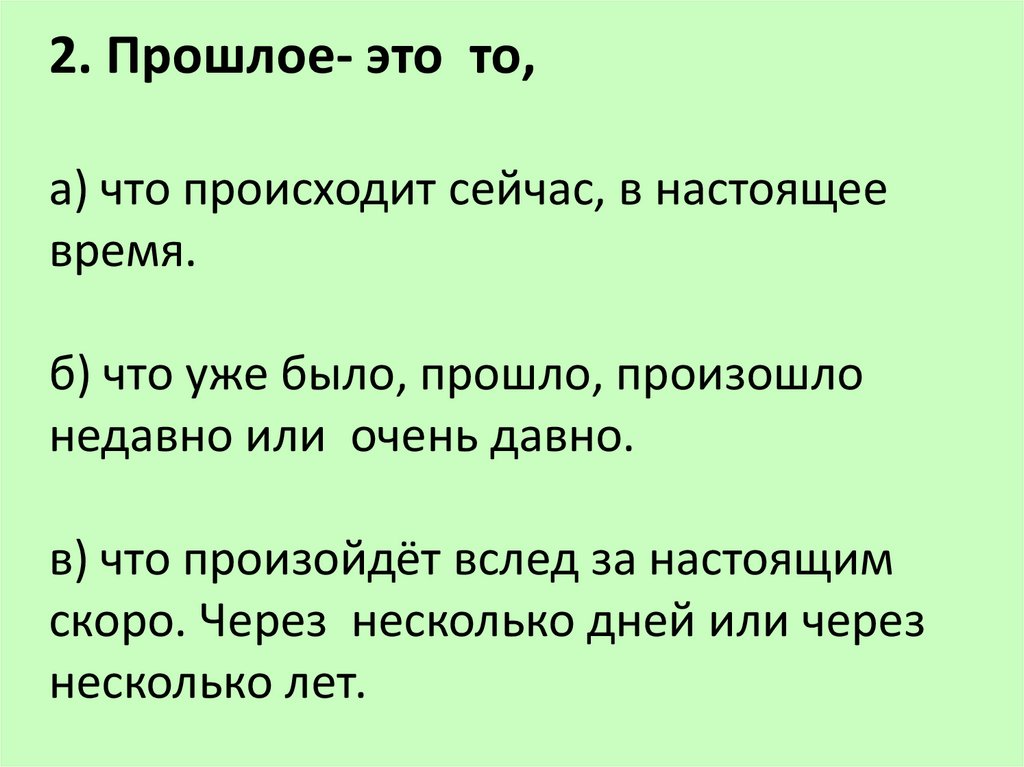 2. Прошлое- это то,а) что происходит сейчас, в настоящее