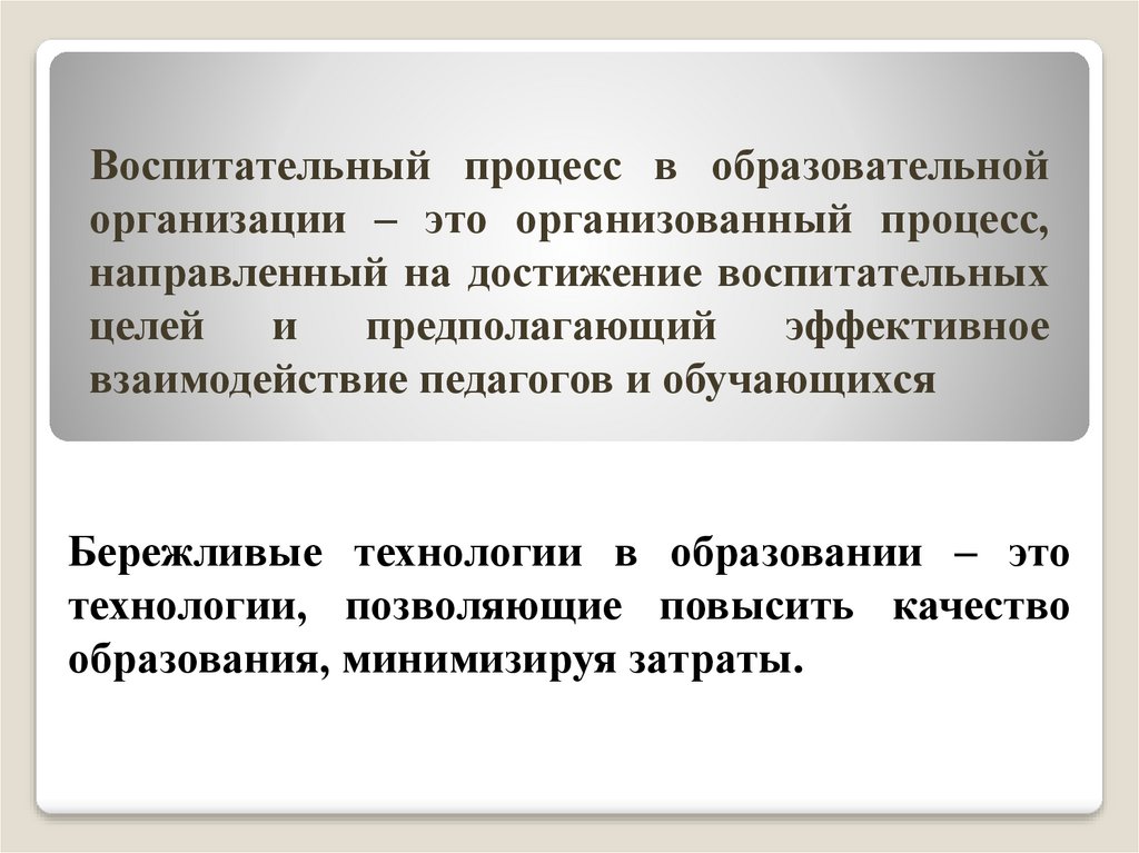 Воспитательный процесс в образовательнойорганизации – это организованный процесс,
