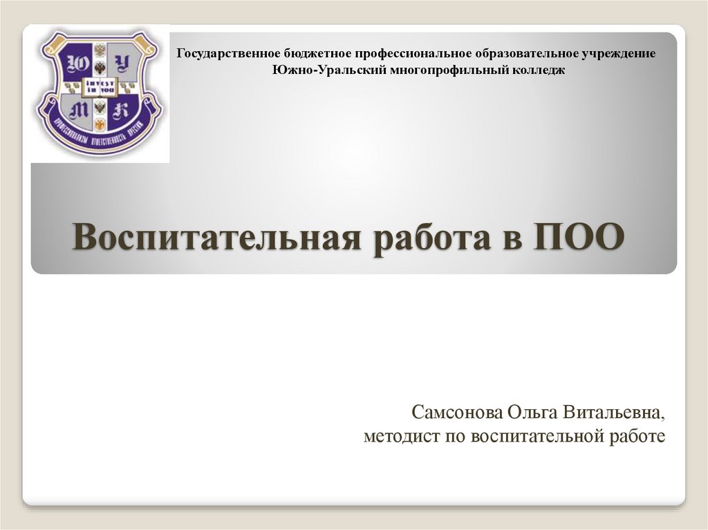 Государственное бюджетное профессиональное образовательное учреждениеЮжно-Уральский многопрофильный колледж