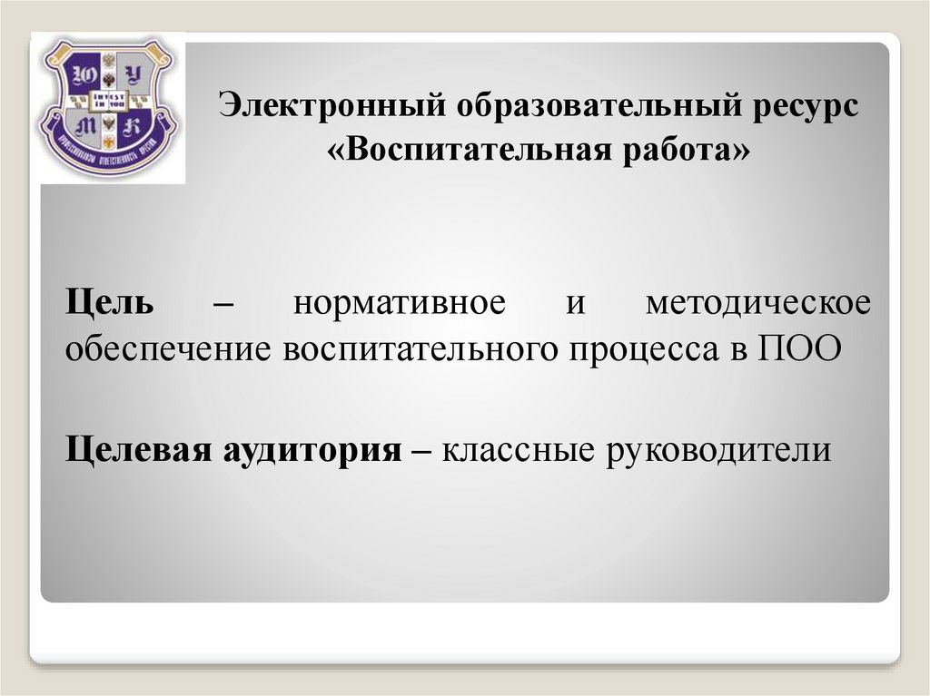 Электронный образовательный ресурс как средство нормативно-методического обеспечения воспитательного процесса в ПОО