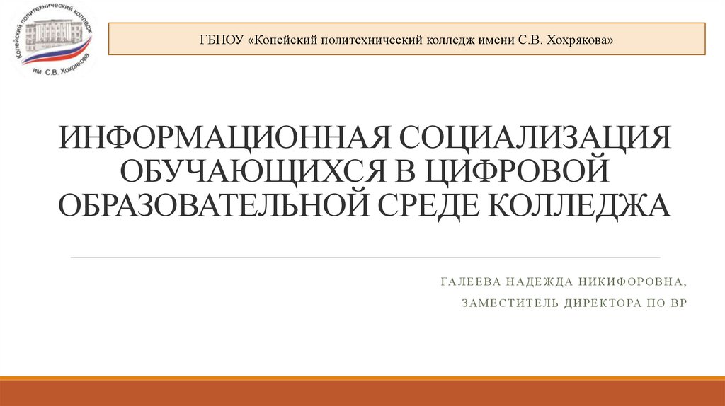 ГБПОУ «Копейский политехнический колледж имени С.В. Хохрякова»ИНФОРМАЦИОННАЯ СОЦИАЛИЗАЦИЯ
