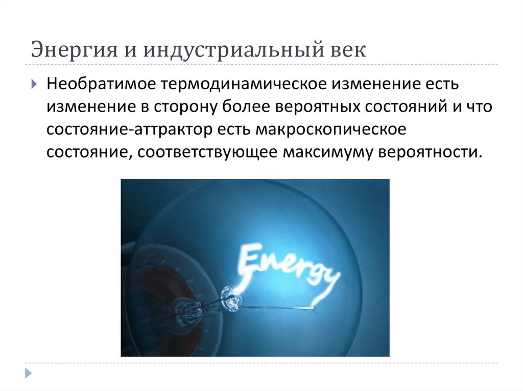 Энергия и индустриальный векНеобратимое термодинамическое изменение есть