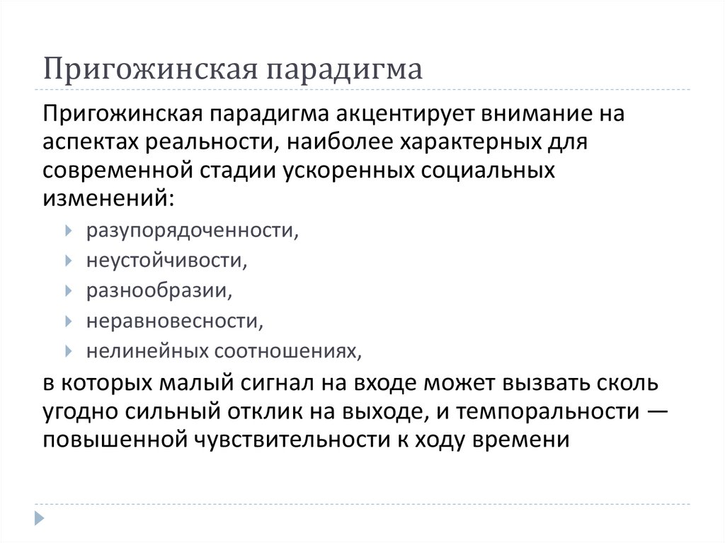 Пригожинская парадигмаПригожинская парадигма акцентирует внимание на