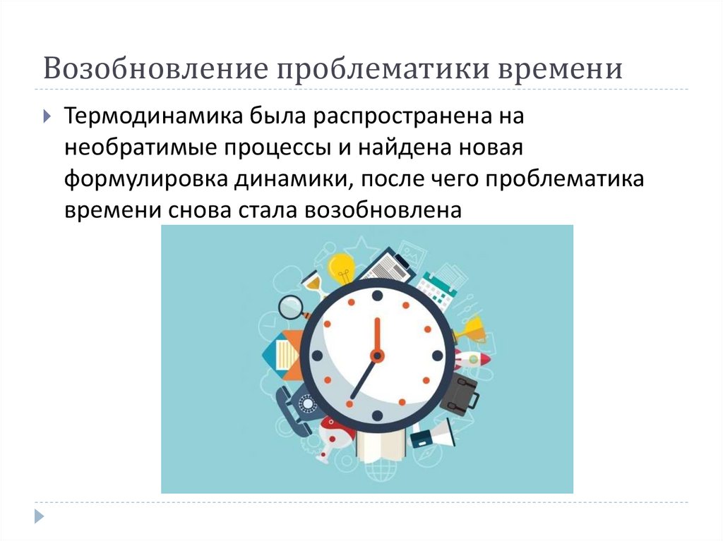 Возобновление проблематики времениТермодинамика была распространена на