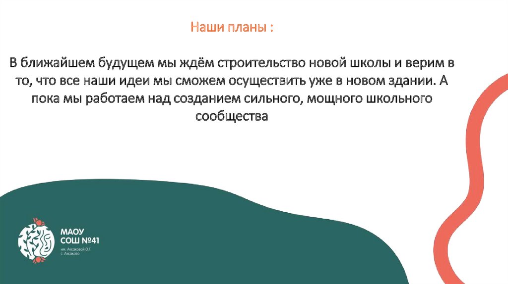 Наши планы :В ближайшем будущем мы ждём строительство новой школы и верим в