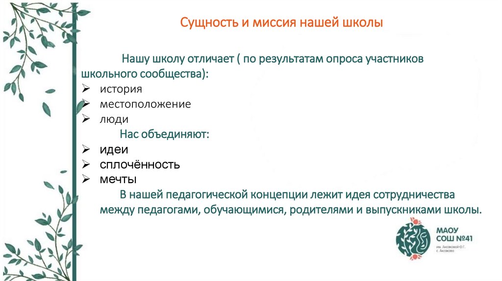 Сущность и миссия нашей школыНашу школу отличает ( по результатам опроса участников