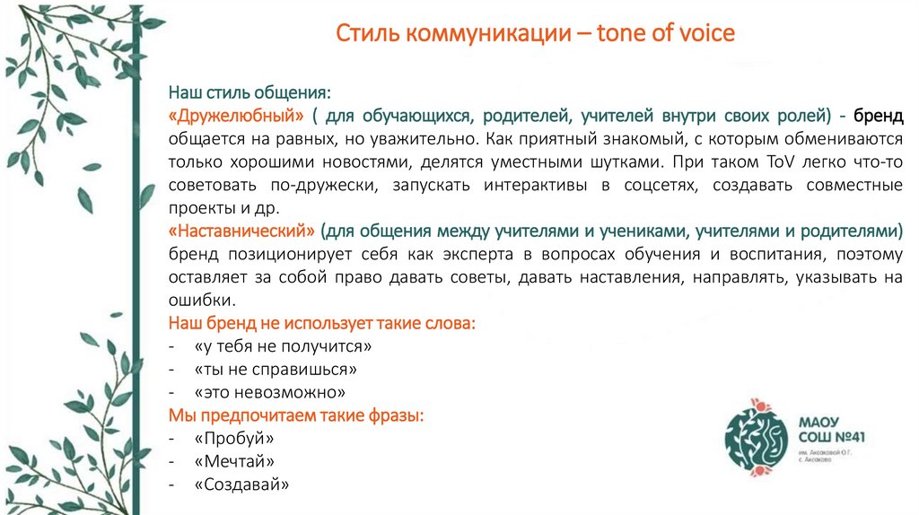 Стиль коммуникации – tone of voiceНаш стиль общения: