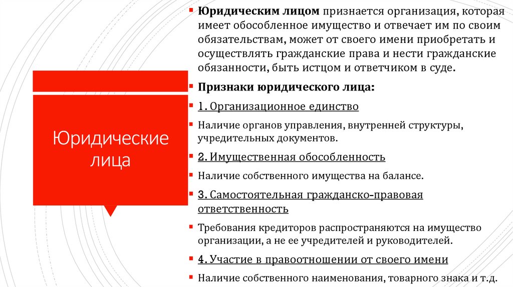 Юридическим лицом признается организация, котораяимеет обособленное имущество и отвечает им по своим