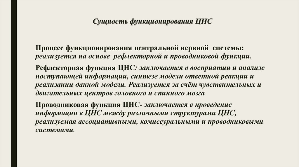 Сущность функционирования ЦНСПроцесс функционирования центральной нервной системы:
