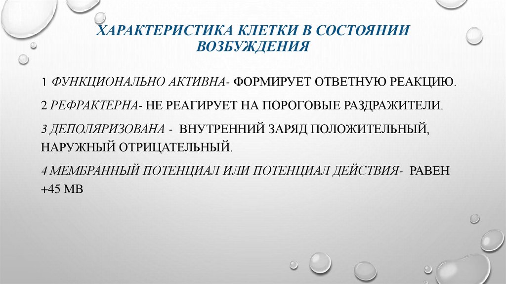 ХАРАКТЕРИСТИКА КЛЕТКИ В СОСТОЯНИИВОЗБУЖДЕНИЯ
