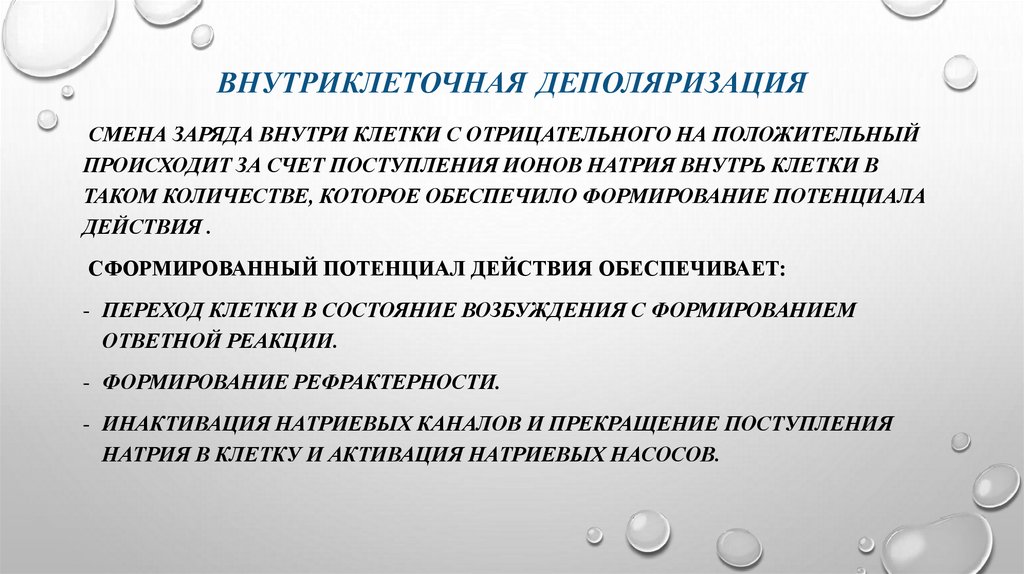 ВНУТРИКЛЕТОЧНАЯ ДЕПОЛЯРИЗАЦИЯСМЕНА ЗАРЯДА ВНУТРИ КЛЕТКИ С ОТРИЦАТЕЛЬНОГО НА ПОЛОЖИТЕЛЬНЫЙ