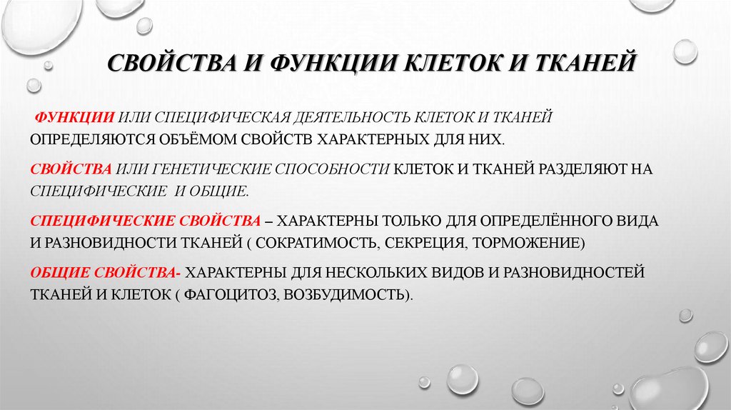 СВОЙСТВА И ФУНКЦИИ КЛЕТОК И ТКАНЕЙФУНКЦИИ ИЛИ СПЕЦИФИЧЕСКАЯ ДЕЯТЕЛЬНОСТЬ КЛЕТОК И ТКАНЕЙ