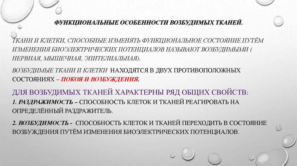 ФУНКЦИОНАЛЬНЫЕ ОСОБЕННОСТИ ВОЗБУДИМЫХ ТКАНЕЙ.ТКАНИ И КЛЕТКИ, СПОСОБНЫЕ ИЗМЕНЯТЬ ФУНКЦИОНАЛЬНОЕ СОСТОЯНИЕ ПУТЁМ