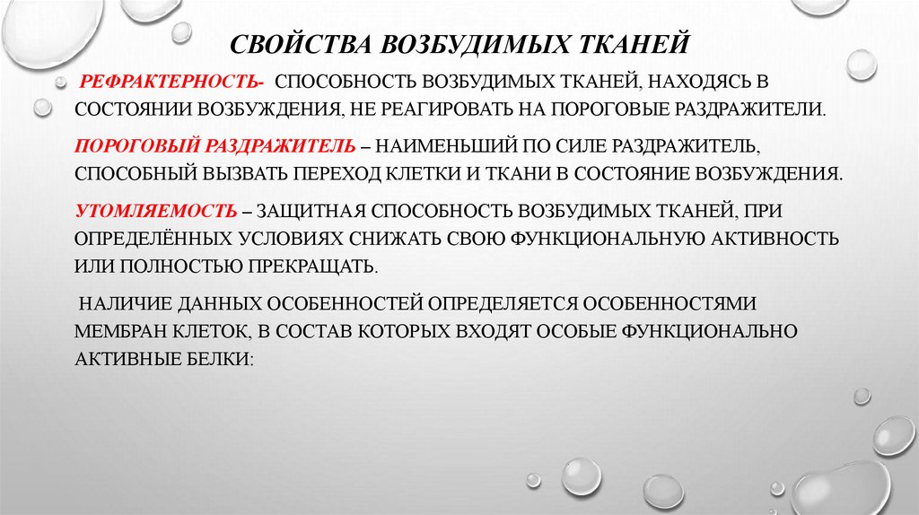 ДЛЯ ВОЗБУДИМЫХ ТКАНЕЙ ХАРАКТЕРНЫ РЯД ОБЩИХ СВОЙСТВ: