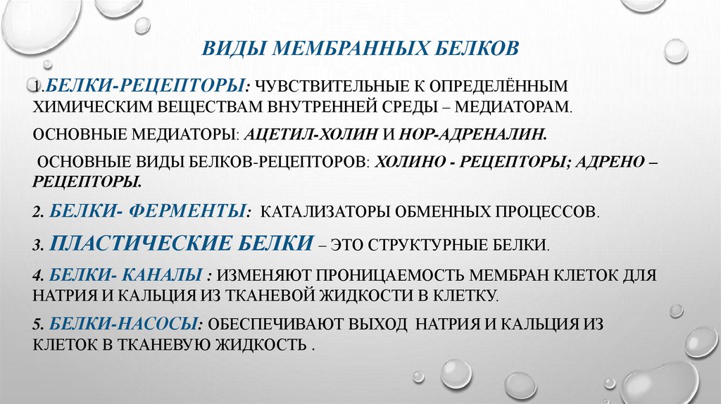 ВИДЫ МЕМБРАННЫХ БЕЛКОВ1.БЕЛКИ-РЕЦЕПТОРЫ: ЧУВСТВИТЕЛЬНЫЕ К ОПРЕДЕЛЁННЫМ