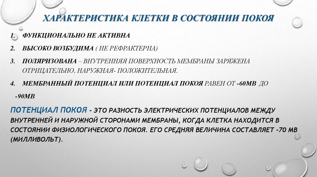ХАРАКТЕРИСТИКА КЛЕТКИ В СОСТОЯНИИ ПОКОЯ1.