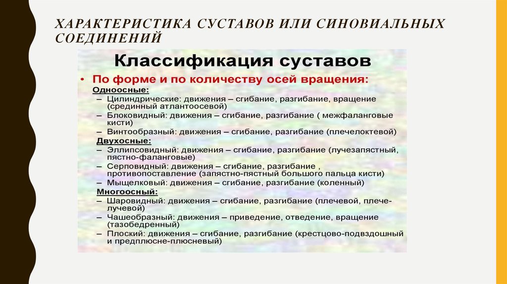 ХАРАКТЕРИСТИКА СУСТАВОВ ИЛИ СИНОВИАЛЬНЫХСОЕДИНЕНИЙ