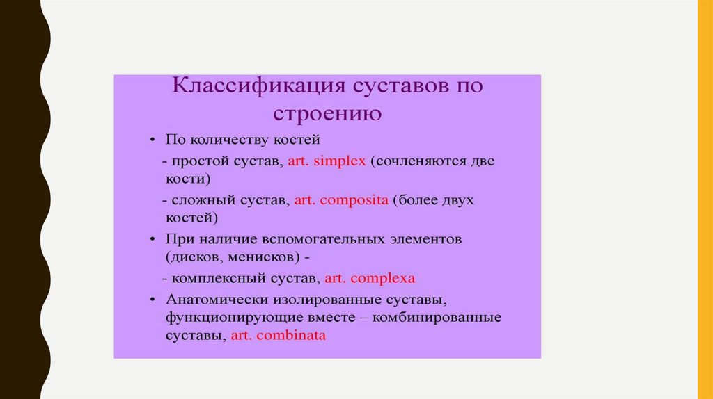 А). Наличие трёх видов соединений – синартрозы, гемиартрозы, диартрозы.