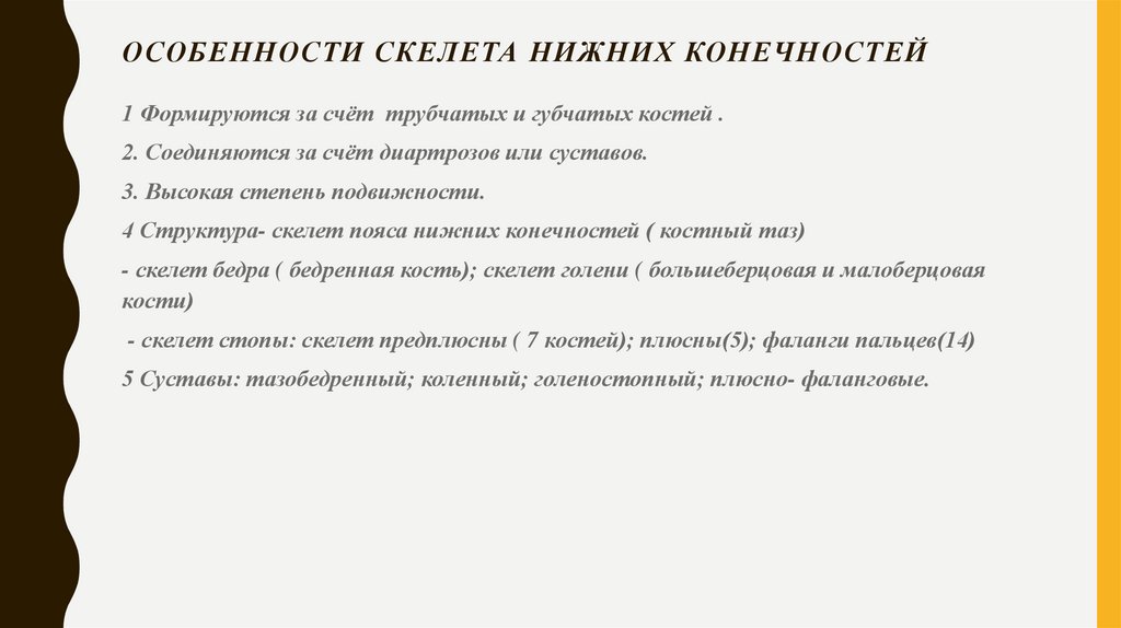 ОСОБЕННОСТИ СКЕЛЕТА НИЖНИХ КОНЕЧНОСТЕЙ1 Формируются за счёт трубчатых и губчатых костей .