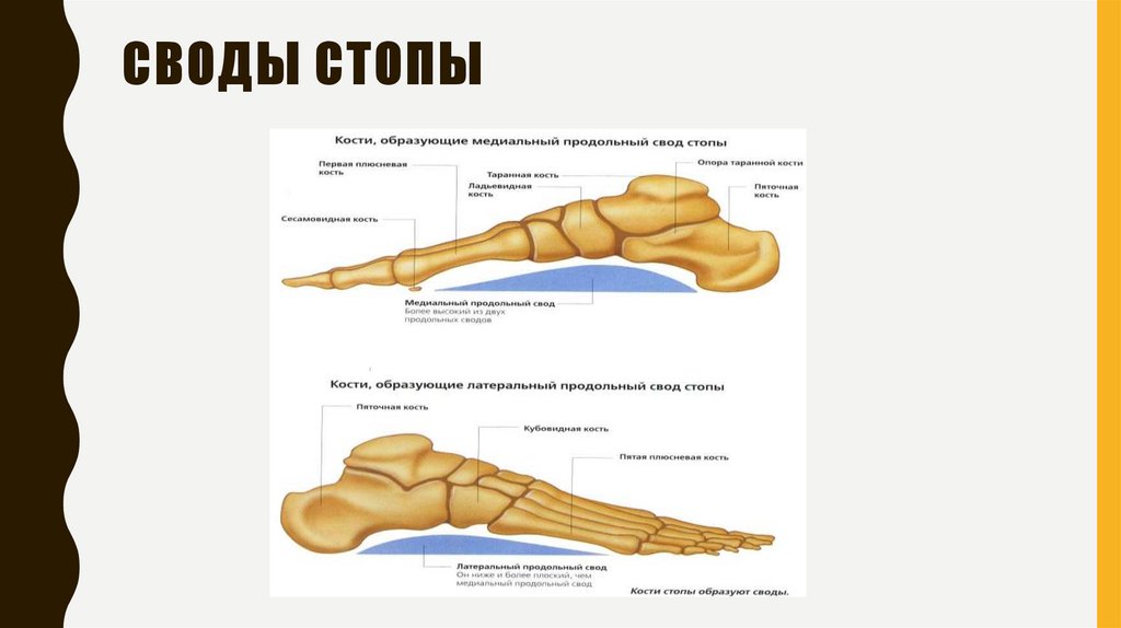 - скелет стопы: скелет предплюсны ( 7 костей); плюсны(5); фаланги пальцев(14)