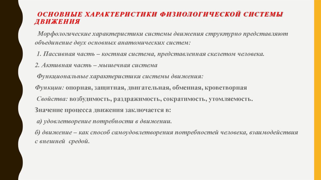 О СН О ВН ЫЕ ХАРАКТ ЕР И СТ И КИ Ф И З ИОЛ ОГ ИЧЕСКО Й СИ СТ ЕМЫД ВИ ЖЕН ИЯ