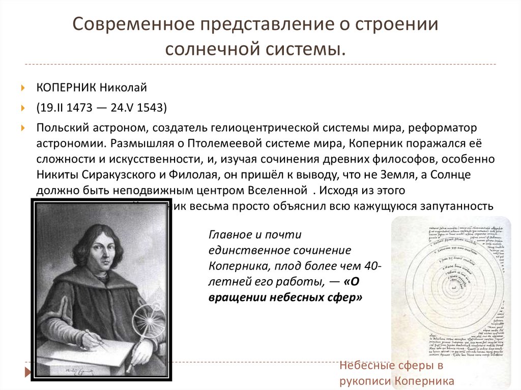 Никиты Сиракузского и Филолая, он пришёл к выводу, что не Земля, а Солнце