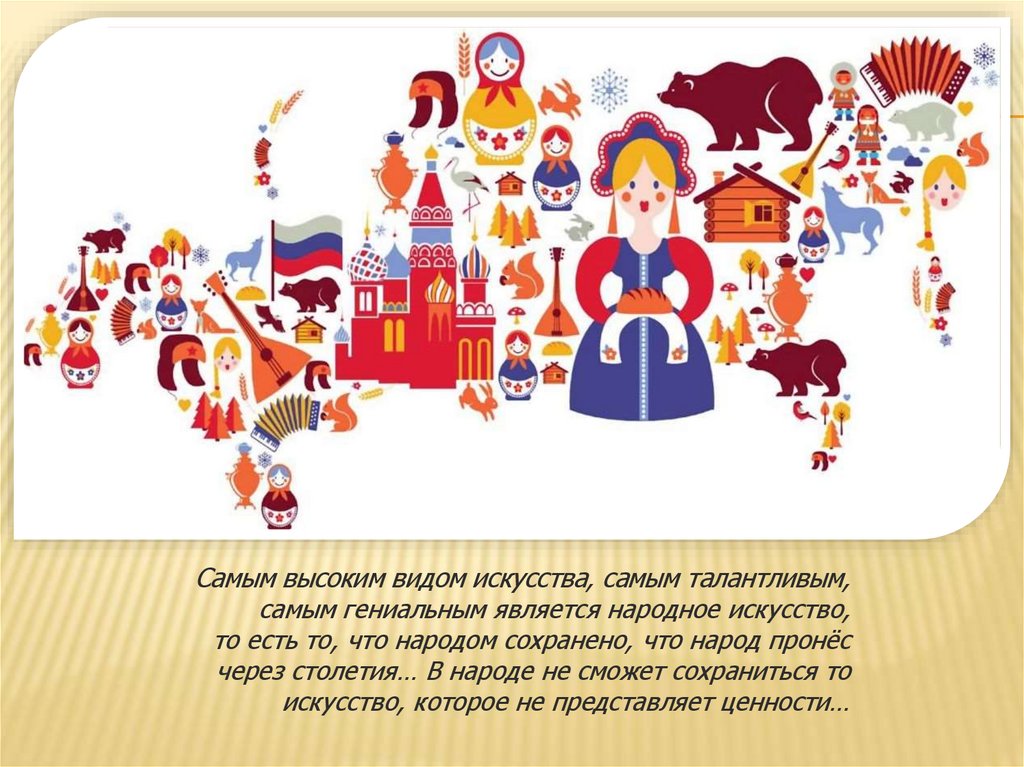 Самым высоким видом искусства, самым талантливым,самым гениальным является народное искусство,