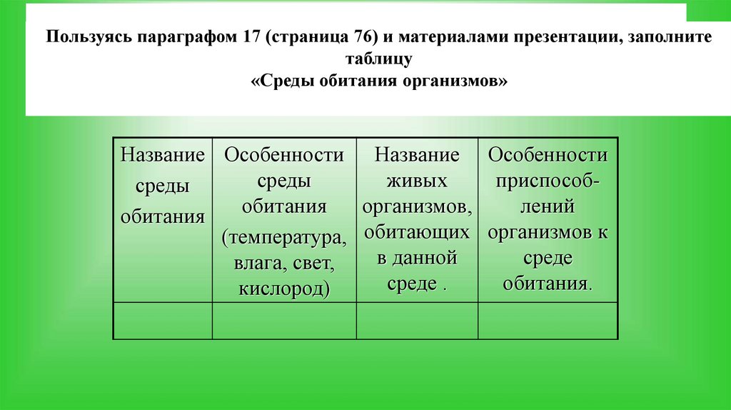 Пользуясь параграфом 17 (страница 76) и материалами презентации, заполнитетаблицу