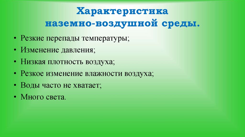 Приспособленность организмов к жизни вназемно-воздушной среде