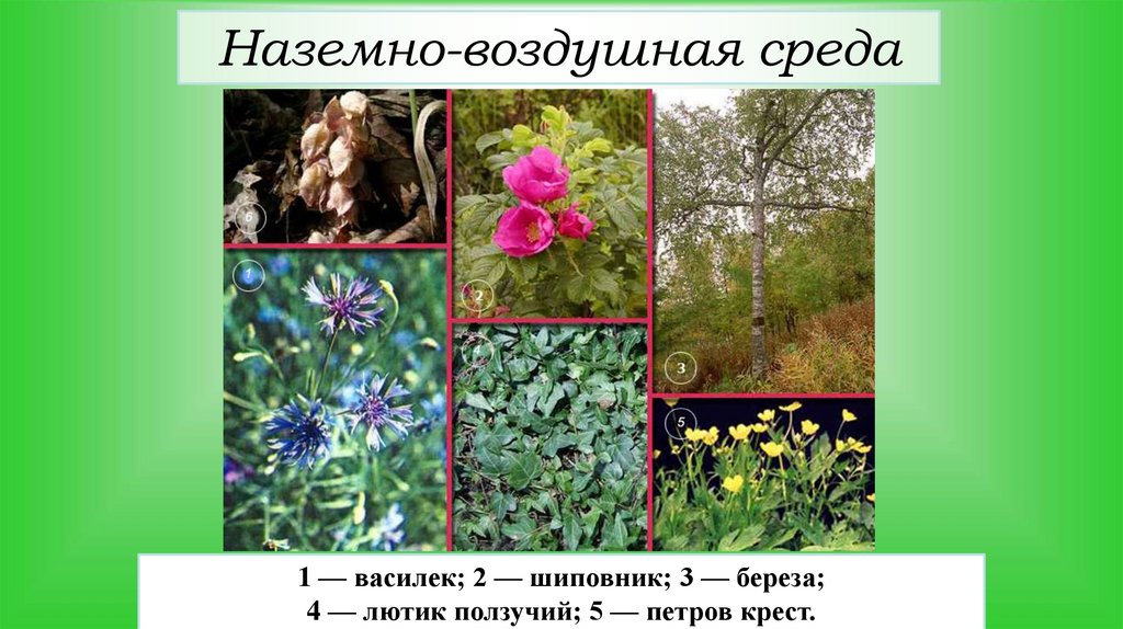 Наземно-воздушная среда1 — василек; 2 — шиповник; 3 — береза;