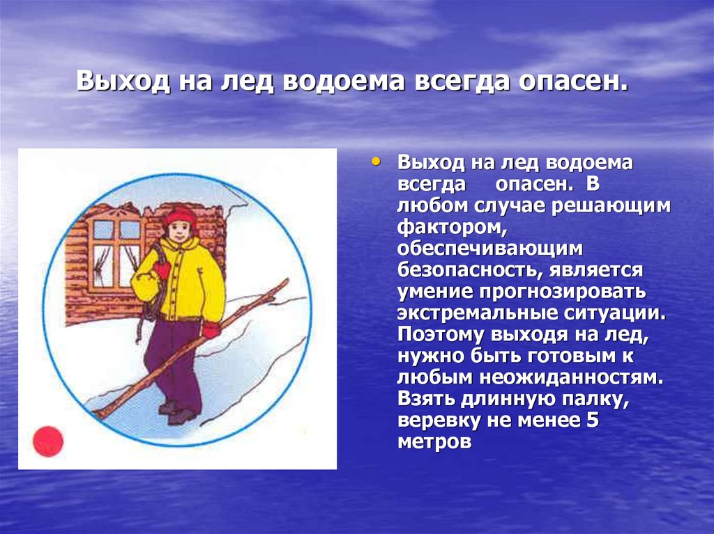 Выход на лед водоема всегда опасен.• Выход на лед водоема
