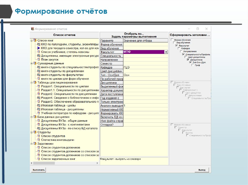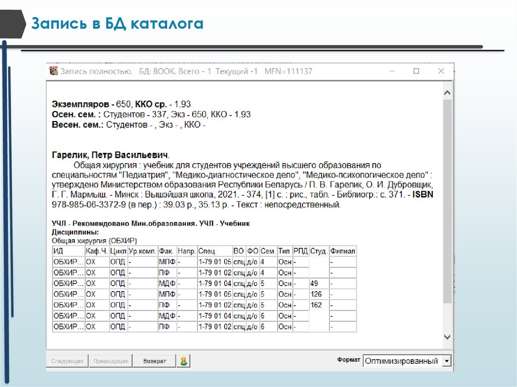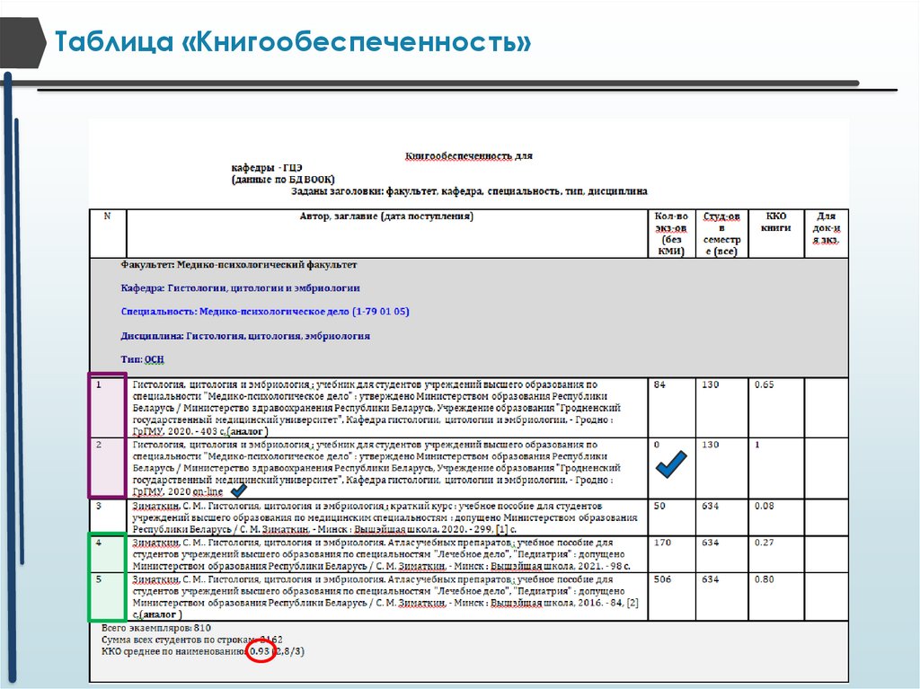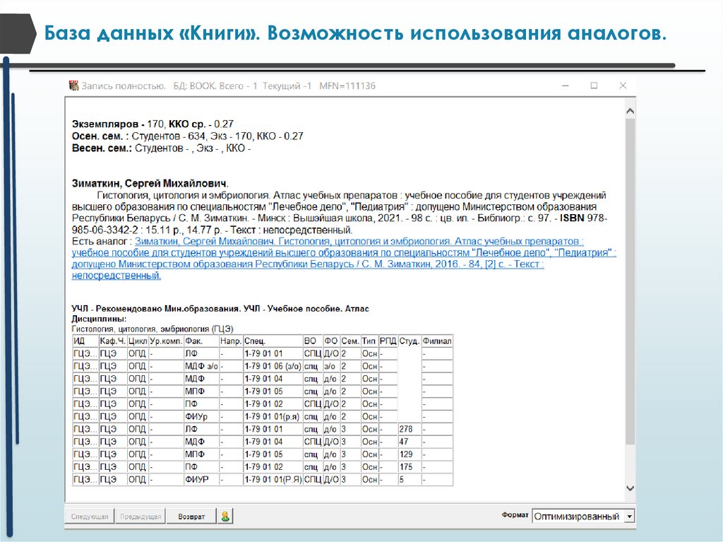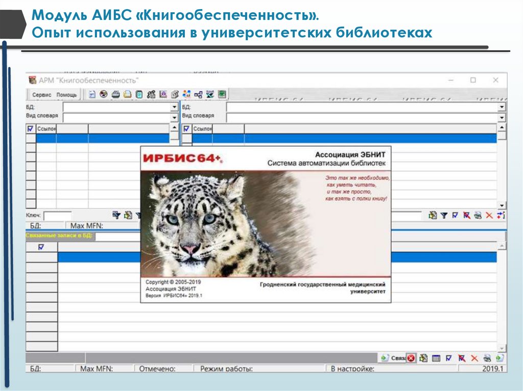 Модуль АИБС «Книгообеспеченность».Опыт использования в университетских библиотеках