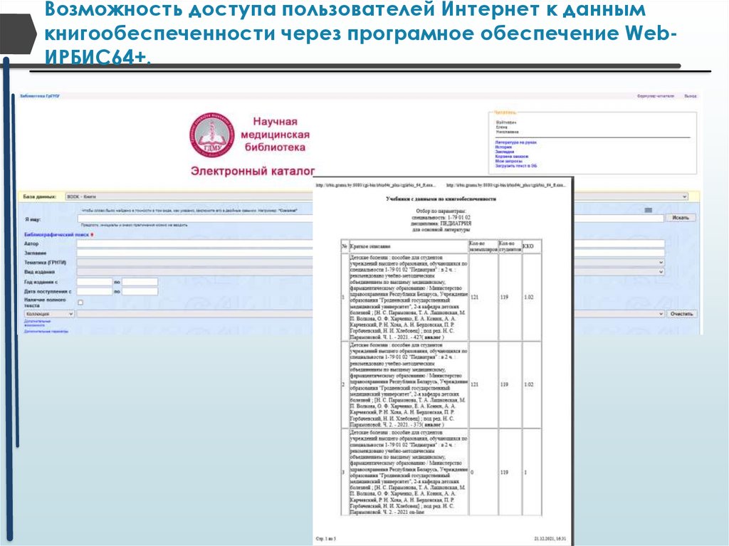Возможность доступа пользователей Интернет к даннымкнигообеспеченности через програмное обеспечение WebИРБИС64+.