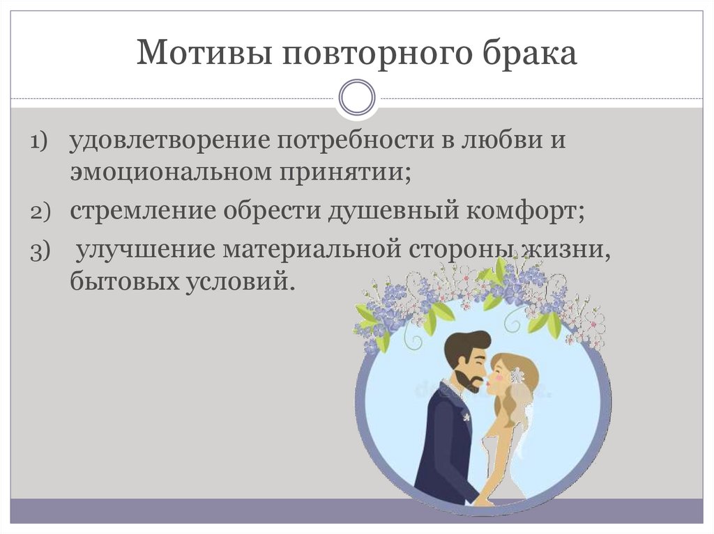 Мотивы повторного брака1) удовлетворение потребности в любви и