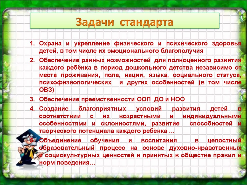 1. Охрана и укрепление физического и психического здоровьядетей, в том числе их эмоционального благополучия