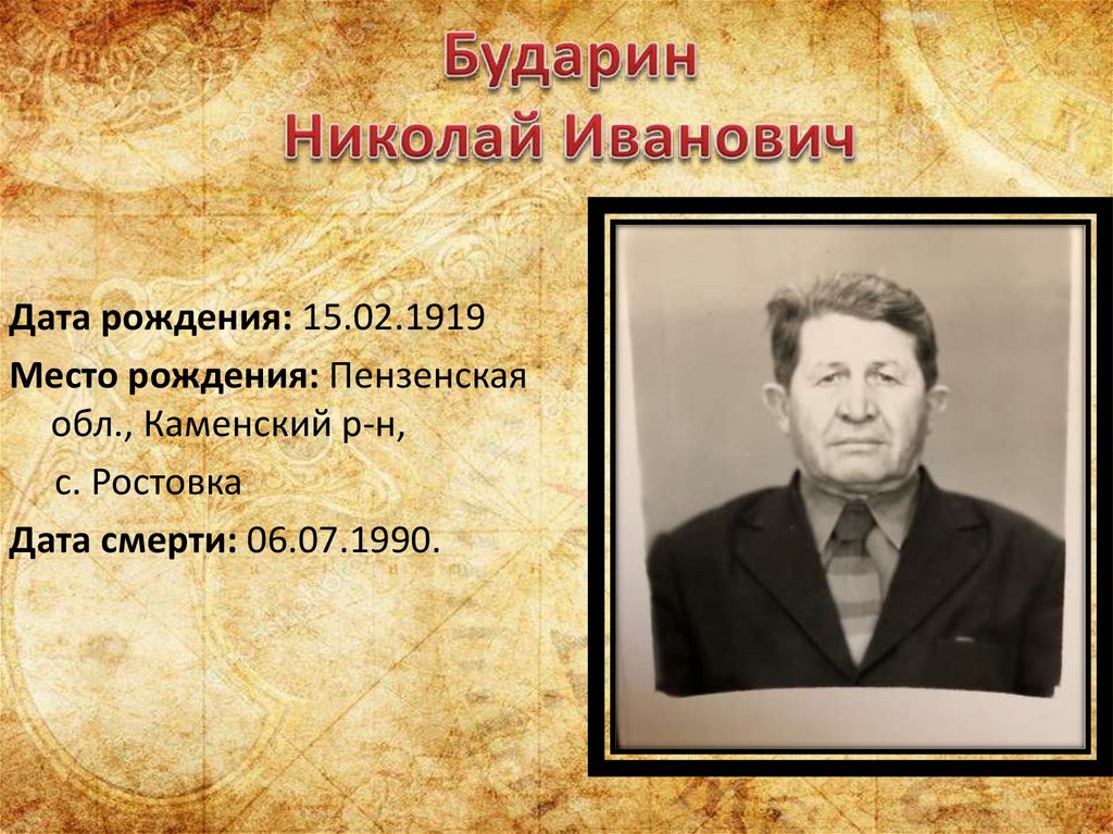 Дата рождения: 15.02.1919Место рождения: Пензенская