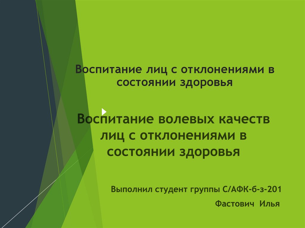 Воспитание лиц с отклонениями всостоянии здоровья